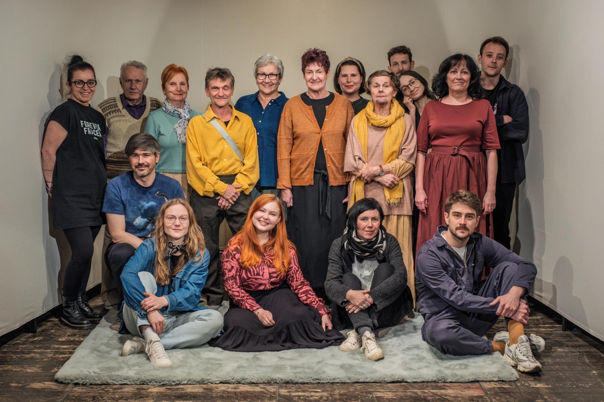 Ze zkoušky zdraví kompletní tým, který v posledních měsících společně krotil stíny. Od herců a hereček ze Studia 60+, přes režiséra Štěpána Gajdoše až po ty, kteří v zákulisí ladí každou baterku, rekvizitu i zvuk.